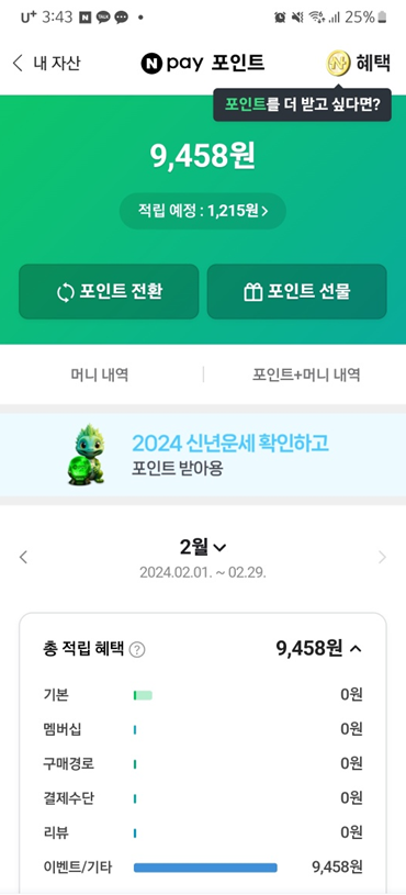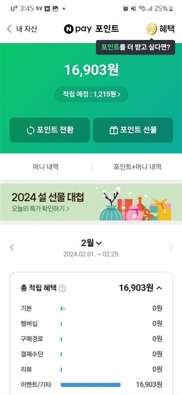 조회했던 제휴 포인트가 네이버포인트로 전환된게 보이시죠?