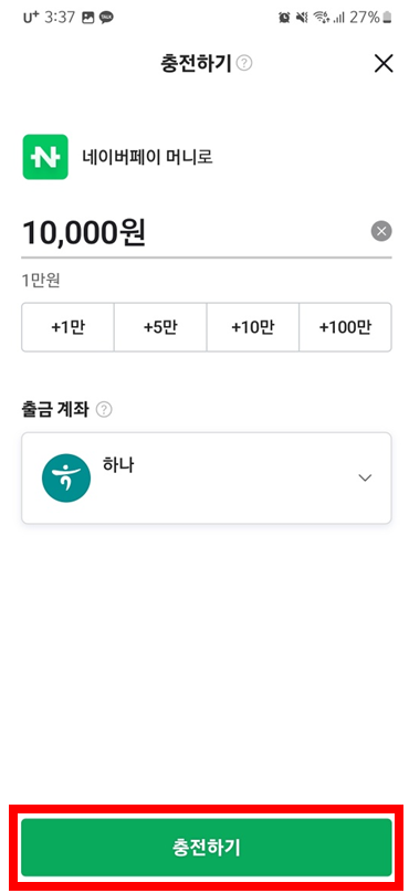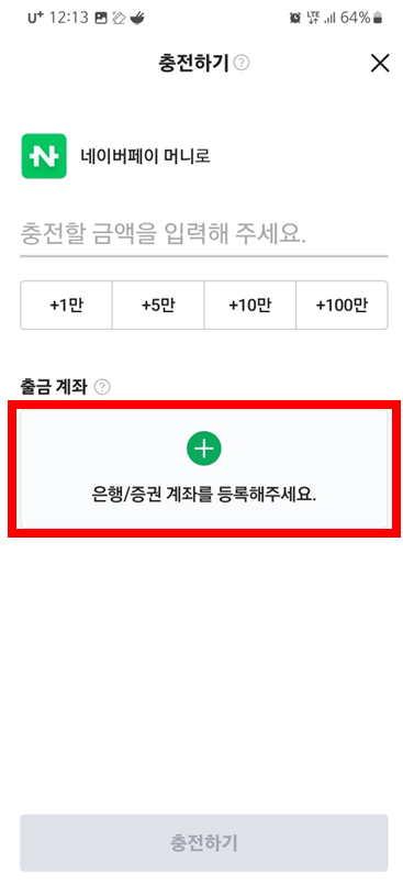 계좌연결이 완료되면 네이버페이 머니로 충전이 가능합니다.
