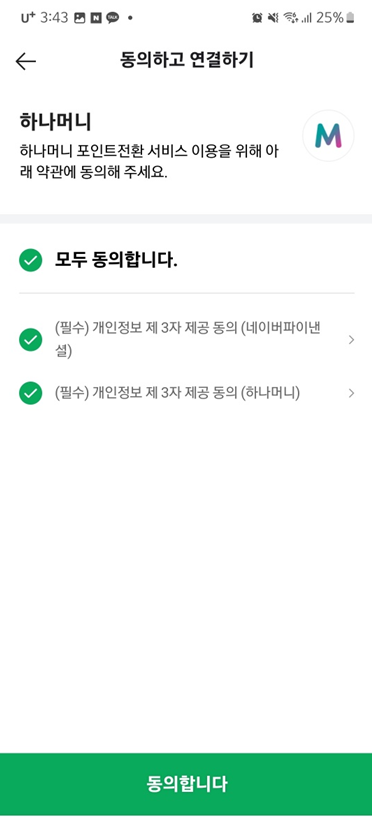 포인트 전환 모두 동의합니다. 체크 후 동의합니다 버튼 누릅니다.