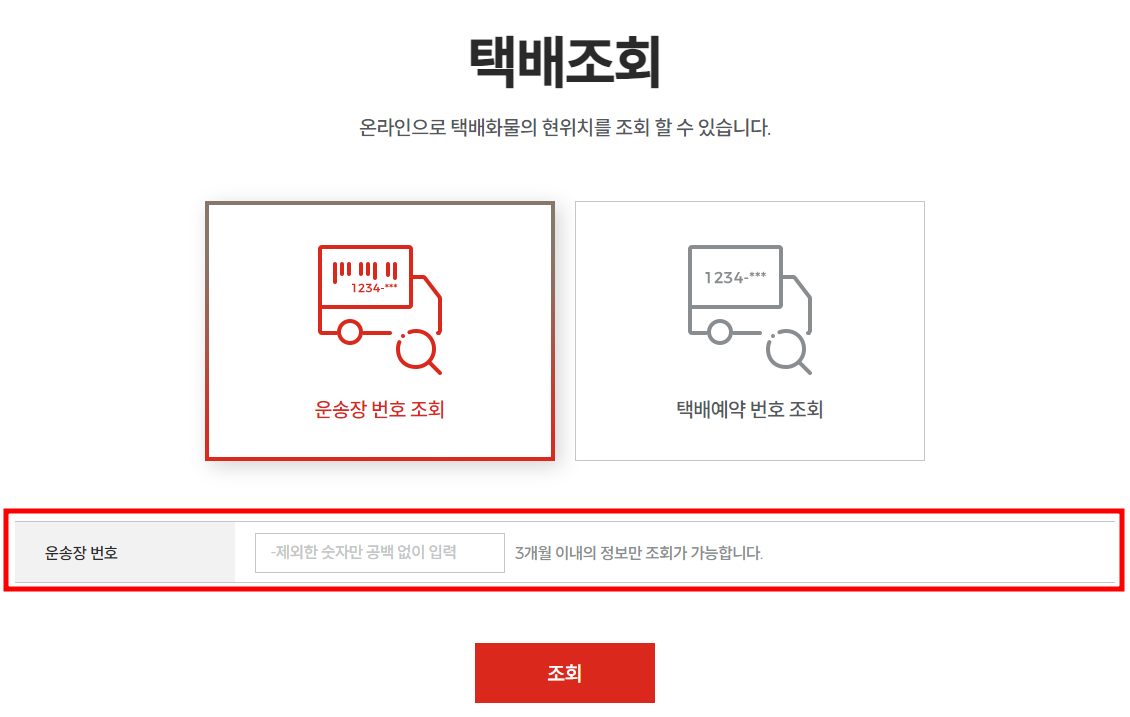 2. 운송장번호 12자리를 입력란에 입력합니다.
