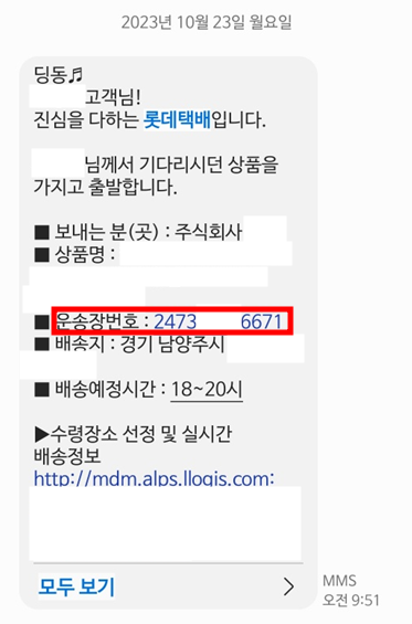 2. 택배 물건 수령 후 7일 이내에 택배조회를 합니다.