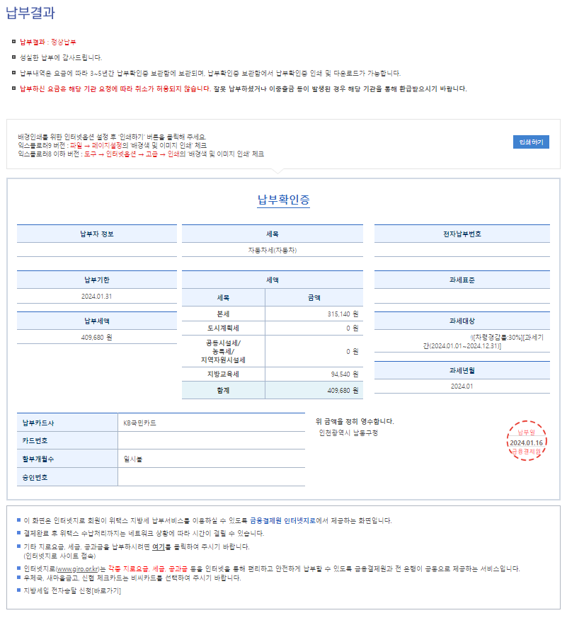 납부확인증까지 나오면 완료됩니다.