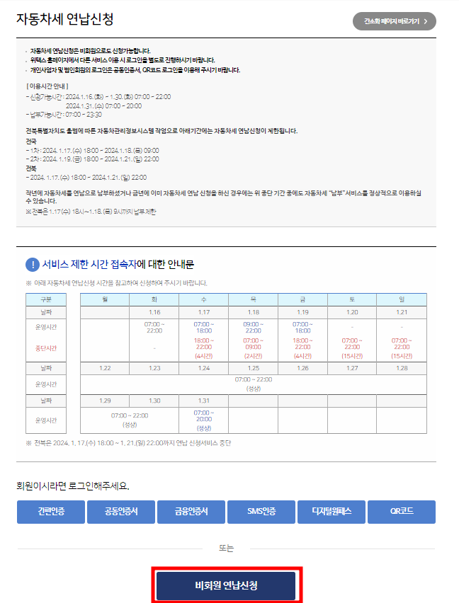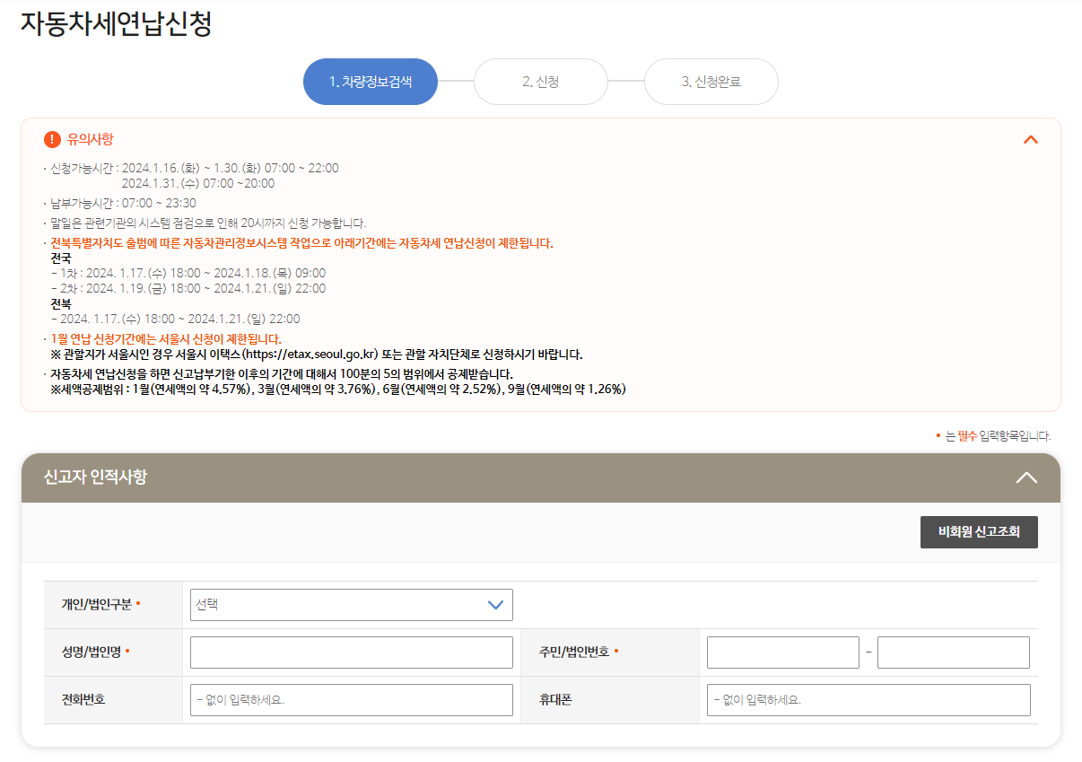 연세액이 10만 원 미만 차량의 경우는 1월 , 3월에만 연납 신청이 가능합니다.