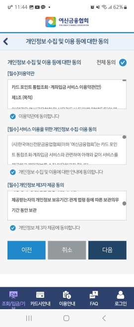 5. 카드에 대한 개인정보 열람 요구 위임동의 체크합니다.