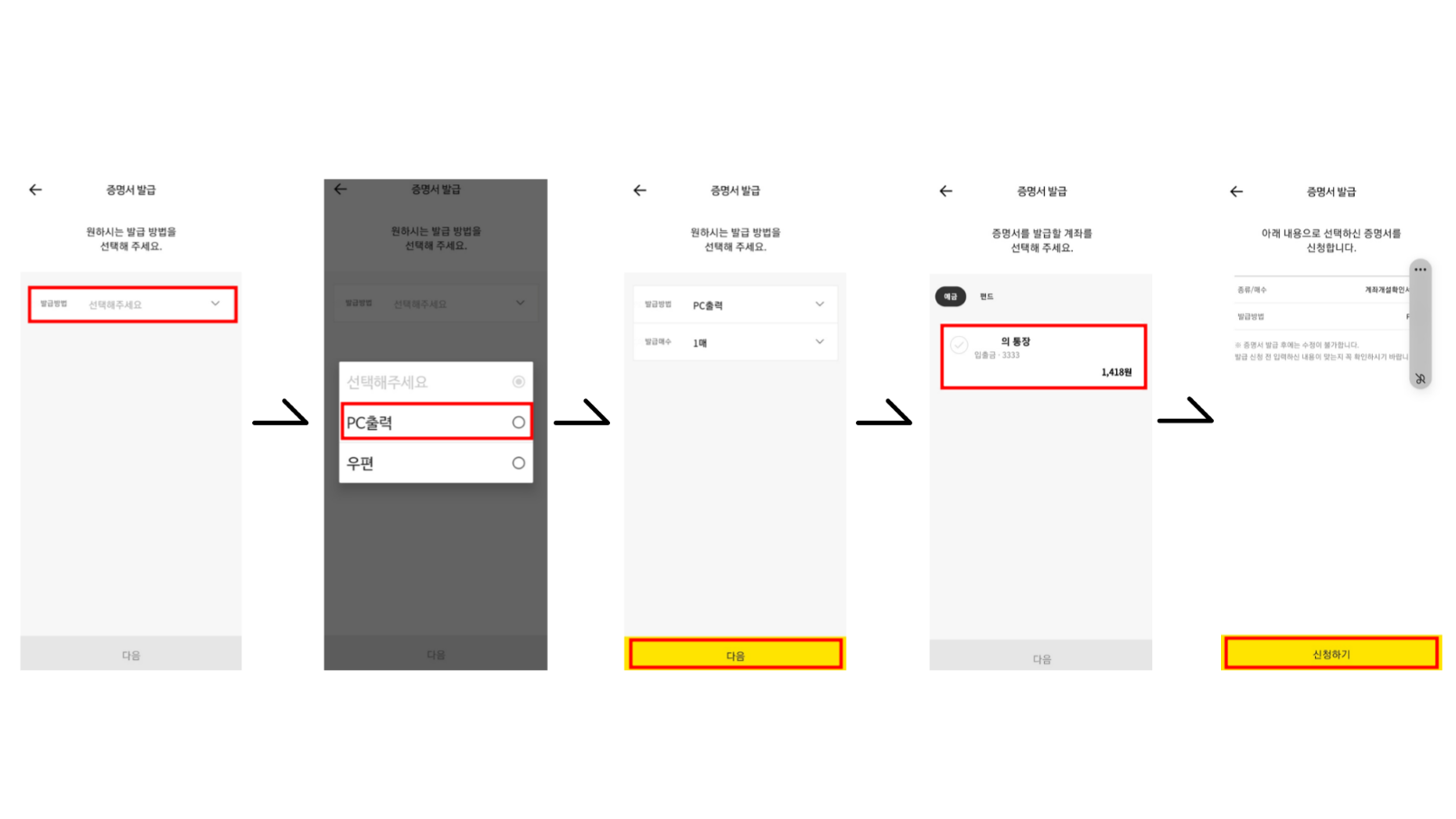 6. 그럼 휴대폰에서 미리 신청해 둔 계좌개설 확인서를 출력하세요.